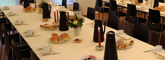 Hvis det er muligt i forhold til kirkens øvrige aktiviteter kan sognegården stilles til rådighed til sammenkomst efter begravelse eller bisættelse i Taastrup Nykirke. Der kan dækkes op til max 80 personer.